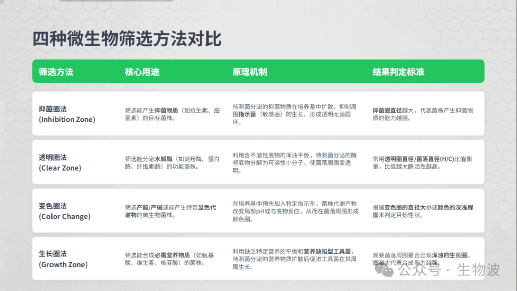 四种经典微生物筛选方法对比