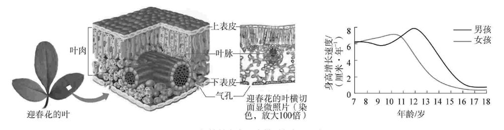 曲线图、遗传图解往往也是模型。例如,图1(右)我国某地男孩和女孩身高增长速度曲线示意图中有两条曲线,反映了两个变量(年龄和身高增长速度)之间的数量关系,属于数学模型。