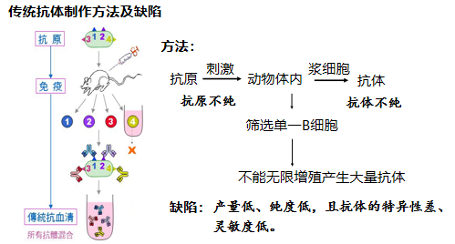 讲单克隆抗体制备之前,首先明确传统抗体制作方法的缺陷: