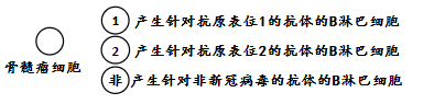 【学生活动】:设计能得到产量高、纯度高、特异性强的新冠病毒抗体的方案。用细胞模型图、箭头配文字以流程图的形式表示,细胞模型图如下: