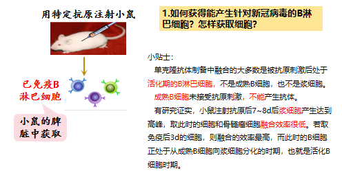 思考1:如何获得能产生针对新冠病毒的B淋巴细胞?怎样获取细胞?