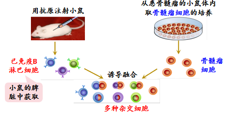 将获取的B淋巴细胞与骨髓瘤细胞融合: