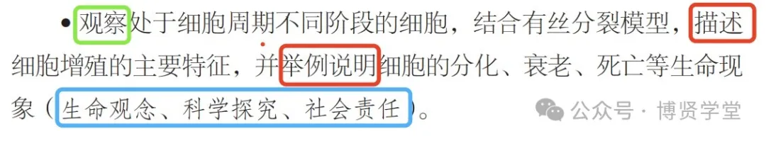 这里要强调一下,教学/学习目标避免写“理解”“知道”这类不好测量的目标,怎么判断学生理解了不同细胞周期的染色体行为呢?当他会描述主要特征就可以判断完成了理解。