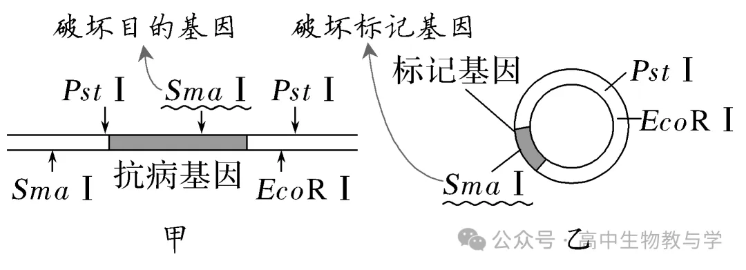 (1)不破坏目的基因和标记基因:若在目的基因、标记基因或其他重要结构上有某酶切位点,为避免这些结构被破坏,要避免使用相关的限制酶。