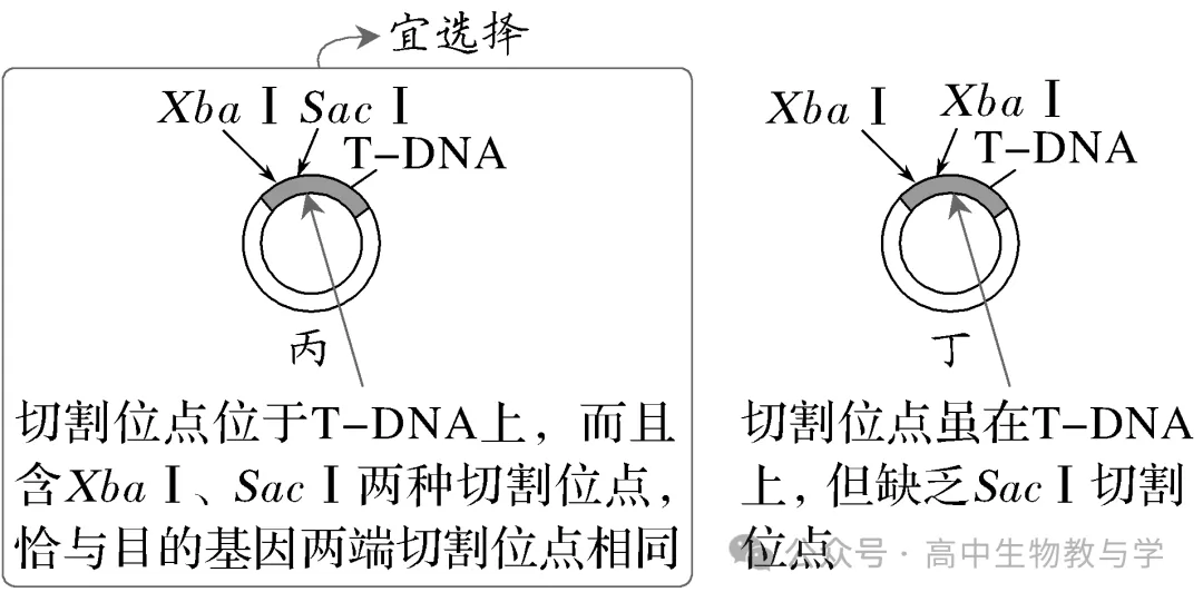 (2)根据T-DNA片段选择限制酶:若对Ti质粒进行操作,则酶切位点应位于T-DNA片段上,才能在农杆菌转化过程中将目的基因导入受体细胞基因组上。