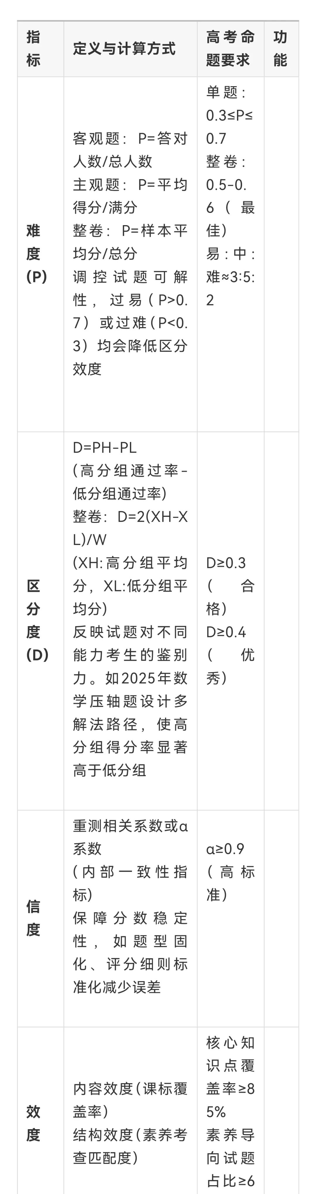 高考命题质量通过以下核心指标进行量化调控: