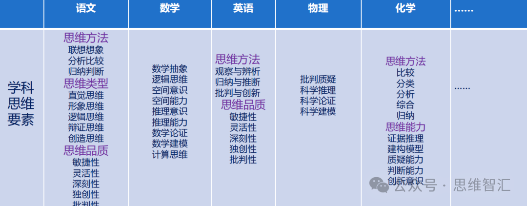 - 共通的思维要素:不同学段、不同学科的核心素养中,都包含“思维”这一共同要素。比如语文强调“思维发展与提升”,数学要求“用数学的思维思考现实世界”,英语注重“思维品质”,理化生聚焦“科学思维”,地理突出“综合思维”。