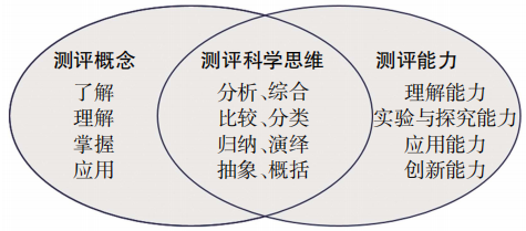 图2 测评概念、测评关键能力和测评科学思维的关系示意图