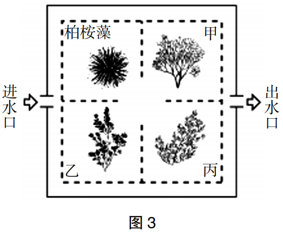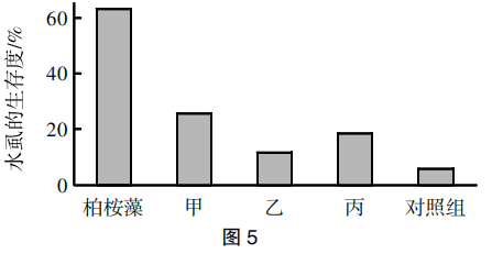 (3)为研究不同海藻对隆头鱼捕食水虱的影响,在盛有等量海水的水箱中分别放入相应的实验材料,一段时间后检测,结果如图 5(甲、乙、丙为上述本地藻)。该实验的对照组放入的有 ______。