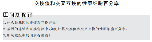 我编写必修部分《疑难知识解惑》时,编入了“交换值和交叉互换的性原细胞百分率”和“基因重组的深度理解”(内含交叉互换)。