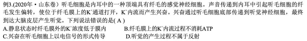 通常情况下,细胞内K+浓度高于细胞外,但某些胃腺壁细胞、某些味觉细胞以及听毛细胞,会出现局部细胞内K+浓度低于细胞外的情况,例3就是这样一种情况。