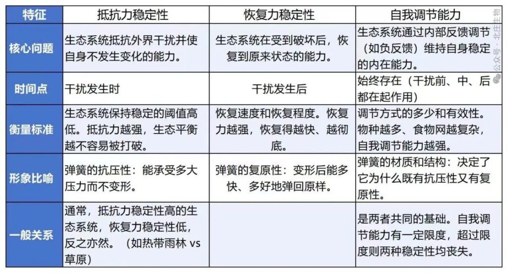 抵抗力稳定性 恢复力稳定性 自我调节能力 来源公众号:北庄生物 1.抗不抗揍?→ 抵抗力稳定性。 2.伤好得快不快?→ 恢复力稳定性。 3.为啥又能抗揍又好得快?→ 自我调节能力。 来源网址:抵抗力稳定性 恢复力稳定性 自我调节能力