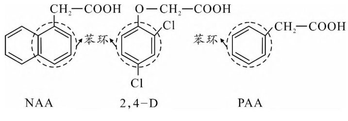 图2 NAA、2,4-D和PAA分子结构式