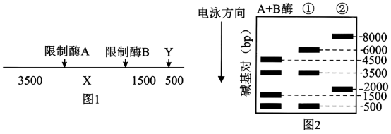 C.根据图乙中酶切电泳分离结果可推测,Y为限制酶B,X长度为4500bp