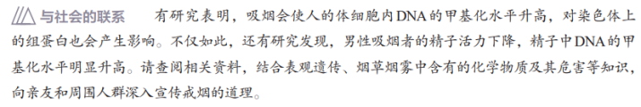 以下是一道“吸烟可造成精子内DNA甲基化水平升高,精子的活力下降”的科研情境试题: