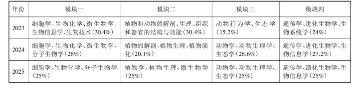 全国中学生生物学联赛(简称:联赛)自2016年开始,尝试在模块内容及考查形式上做出调整,目标是向国际生物学奥林匹克竞赛(IBO)看齐。在试卷中,逐渐增加文献题和图表题的比重,更加注重学生科学思维能力的考查。虽然存在着奇偶年的风格差异,但是整体上,还是朝着4个模块内容题量均衡的方向发展。2025年联赛的主要变化是:题量从原来的100多题缩减至72题,考试时间却延长了半个小时。