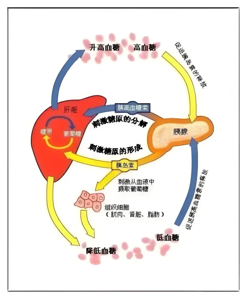 当血糖降低时,直接刺激胰岛A细胞,下丘脑另一区域也会促使胰岛A细胞分泌胰高血糖素增加,同时肾上腺髓质分泌肾上腺素增加。胰高血糖素和肾上腺素能促进肝糖原分解和非糖物质转化,抑制血糖氧化分解和合成糖原,进而使血糖浓度升高,趋向正常值。胰高血糖素与胰岛素是拮抗关系,与肾上腺素则是协同关系,它们共同维持血糖平衡。