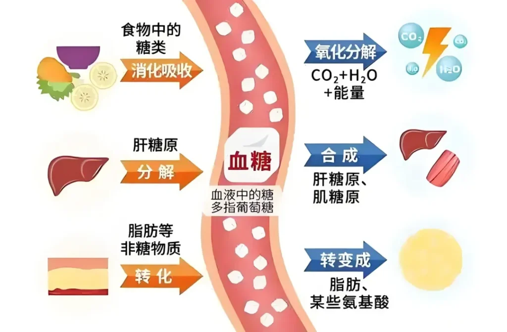 血糖浓度需维持在3.9 – 6.1mmol/L,其来源与去路处于动态平衡。来源包括食物消化吸收、肝糖原分解以及非糖物质转化;去路则有氧化分解供能、合成肝糖原和肌糖原以及转变为脂肪和某些氨基酸等。