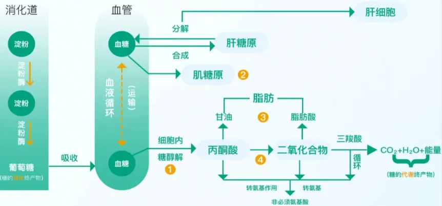 血糖代谢的源头是消化道对食物中淀粉的消化。淀粉在淀粉酶的作用下逐步分解,最终生成葡萄糖。这一过程主要在口腔和小肠中进行,口腔中的唾液淀粉酶开启淀粉的初步消化,而小肠则是淀粉消化的主要场所,肠液中的淀粉酶将淀粉彻底分解为葡萄糖,随后葡萄糖通过小肠黏膜上皮细胞被吸收进入血液,成为血糖的重要来源。