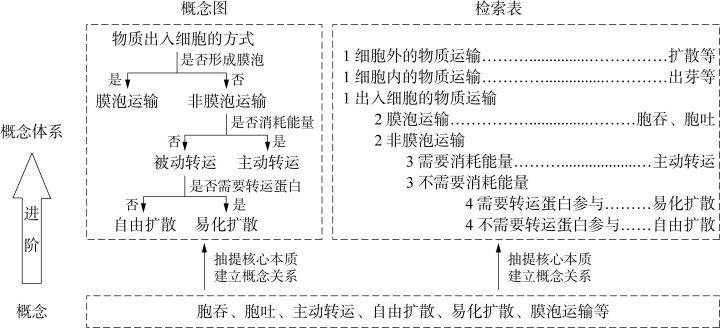 图5 “物质进出细胞的方式”概念图及检索表