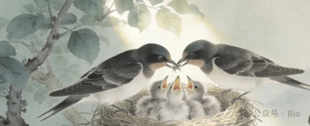 这首诗看似在写燕子的生活,实则是一首“生命观察日记”——从双燕筑巢到雏燕离巢,每一个场景,都对应着初中生物课本里的核心知识点,只是被诗人用温柔的笔触,写成了可感可触的诗行。