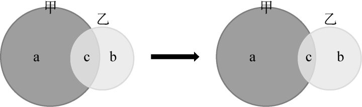 (2023年江苏卷第14题)在江苏沿海湿地生态系统中,生态位重叠的两种动物甲、乙发生生态位分化(图1)。甲主要以植物a为食,乙主要以植物b为食,两者又共同以植食性动物c为食。下列相关叙述错误的是(A)