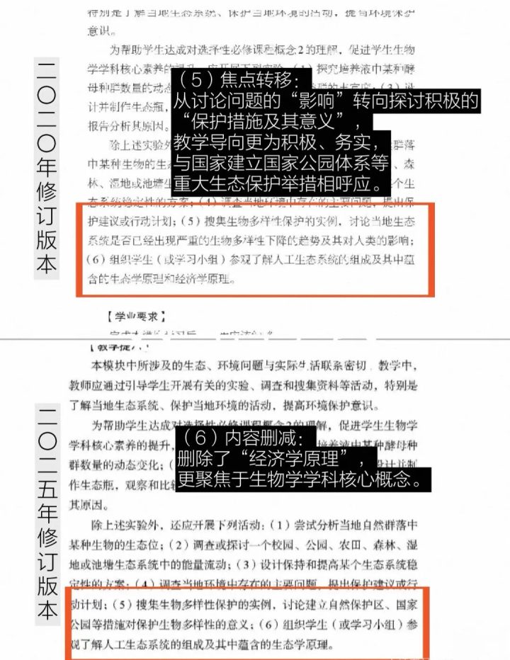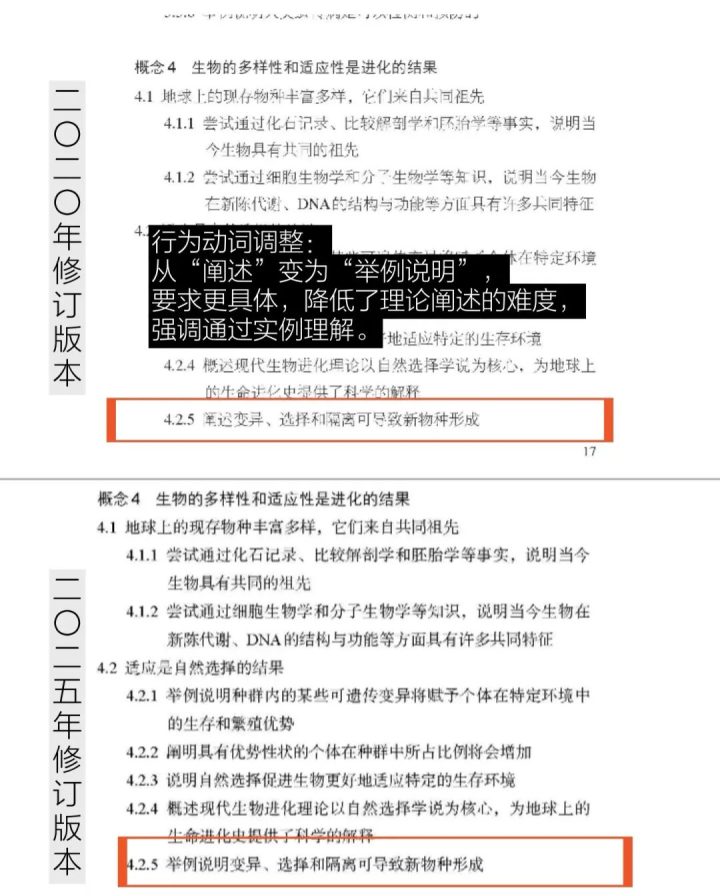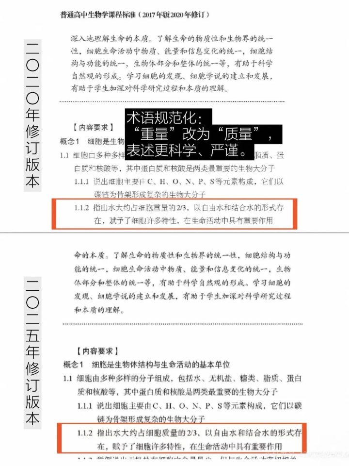 生物学课程标准2025修订更详细细节对比