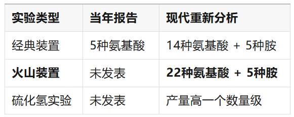 科学家推测:米勒当年的分析手段太落后了。他用的是纸层析,根本检测不到微量物质。而且,他可能觉得这个”火山版”结果太复杂,不如经典版简洁漂亮。